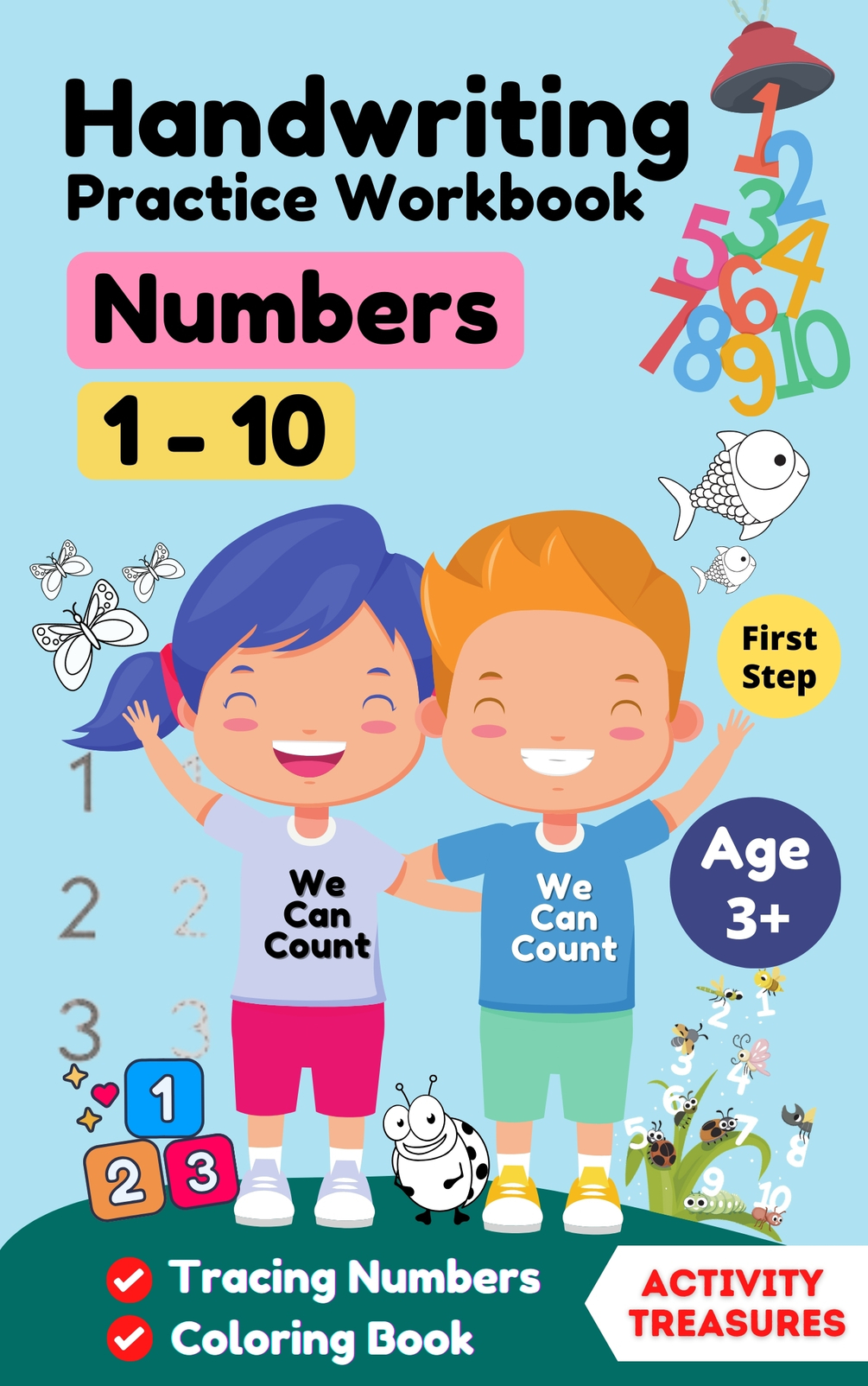 Purchase this fun workbook with 30+ pages to expand your kids' knowledge of numbers, number sequence and learn to write numbers from 1-10.